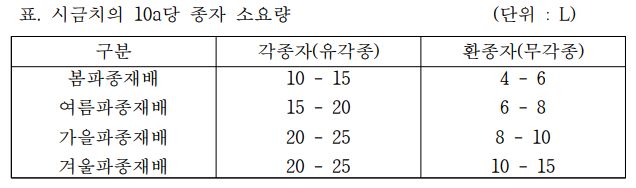 여름재배 : 6월 초 또는 7월 초에 씨를 뿌려 7월 말과 8월 말에 수확